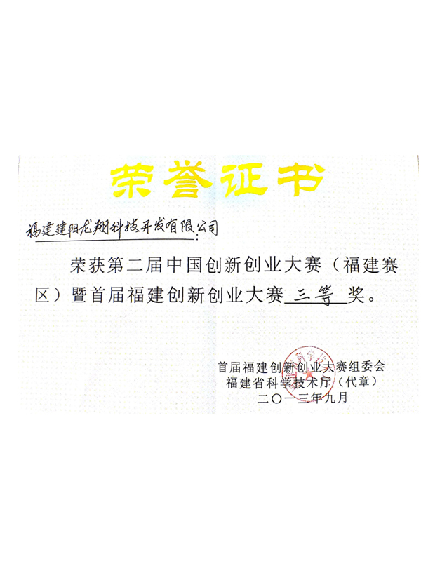 第二屆中國創(chuàng)新創(chuàng)業(yè)大賽(福建賽區(qū))暨首屆福建創(chuàng)新創(chuàng)業(yè)大賽三等獎