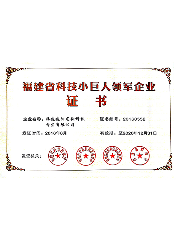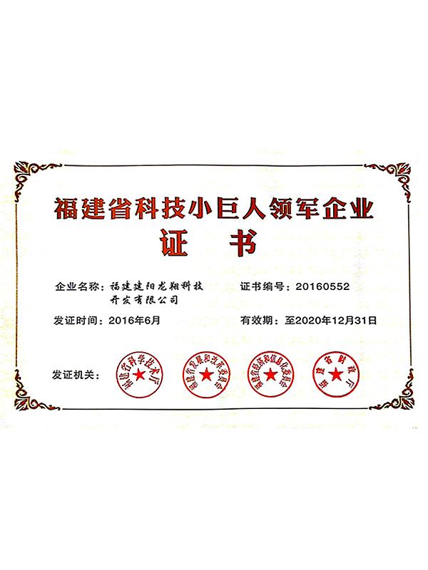 福建省科技小巨人領軍企業(yè)證書