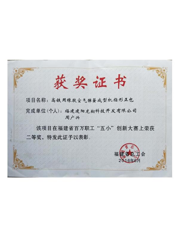 福建省百萬職工“五小”創(chuàng)新大賽二等獎-高鐵用橡膠空氣彈簧成型機指形正包